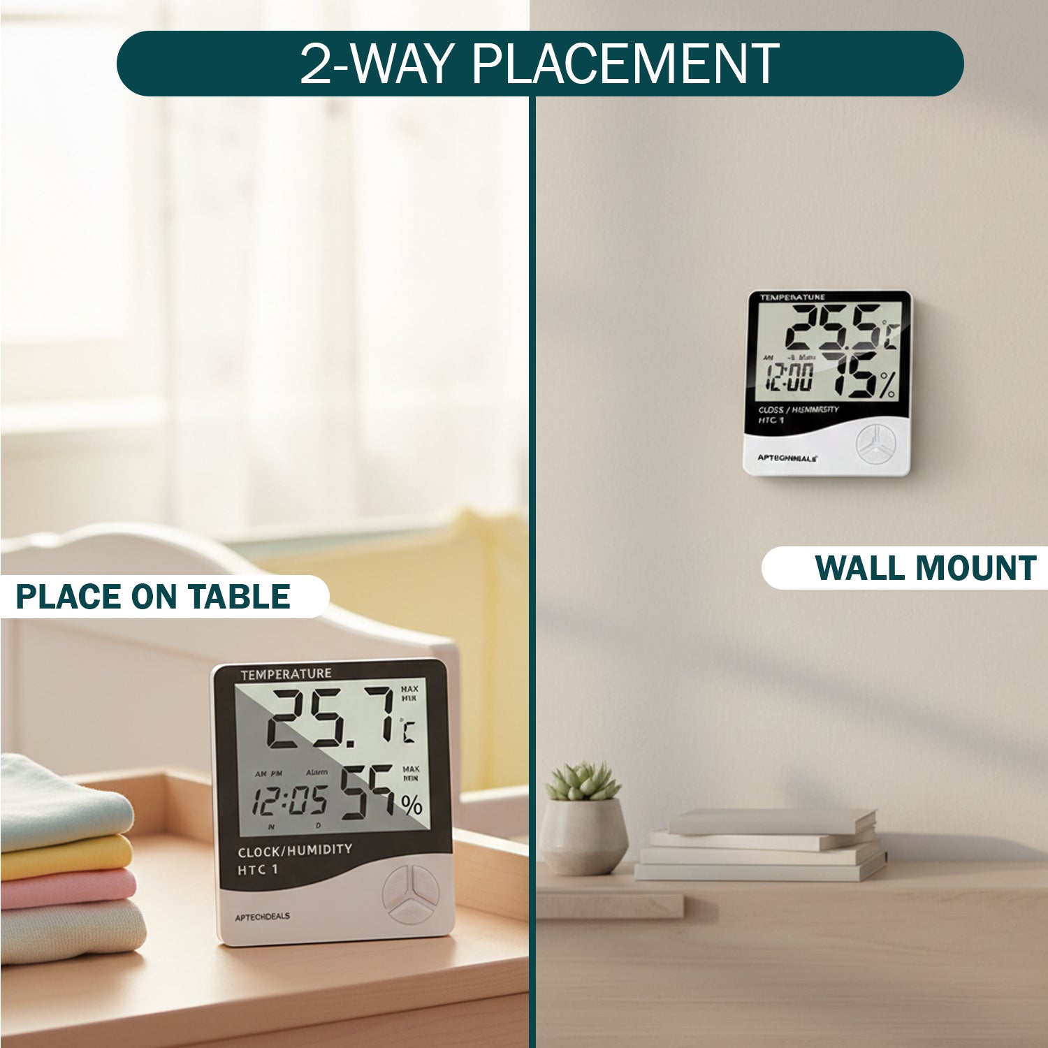Aptechdeals HTC-1 Digital Hygrometer Thermometer Humidity Meter With Clock LCD Display