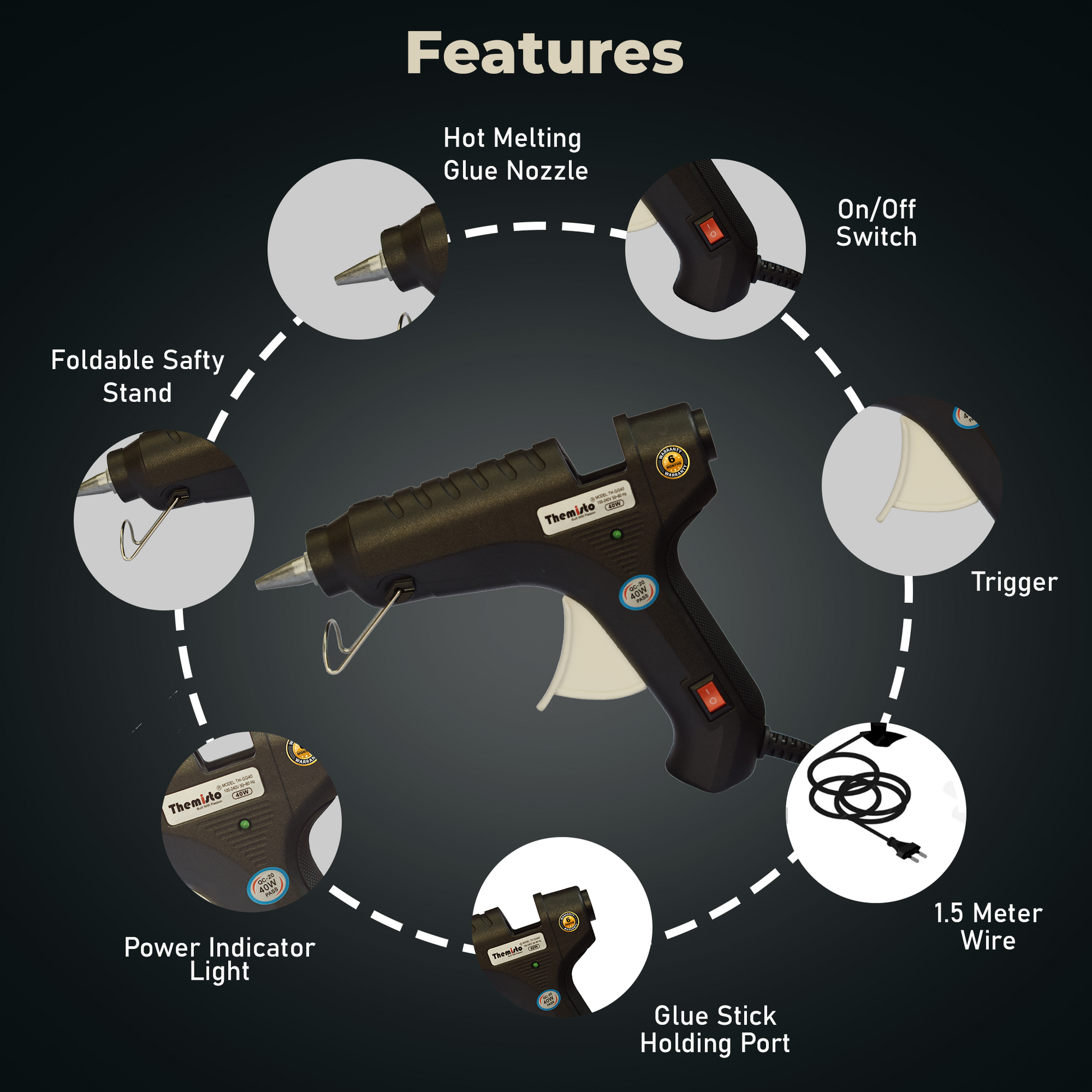 Themisto 40W Hot Melt Glue Gun with Anti Drip for Arts and Crafts, DIY Projects (Black) -5 Pieces
