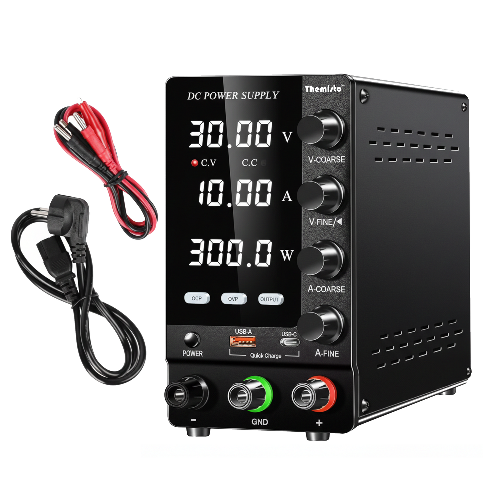 2. Precision Variable Output – 0–30V & 0–10A (300W) stable, regulated power for accurate testing.