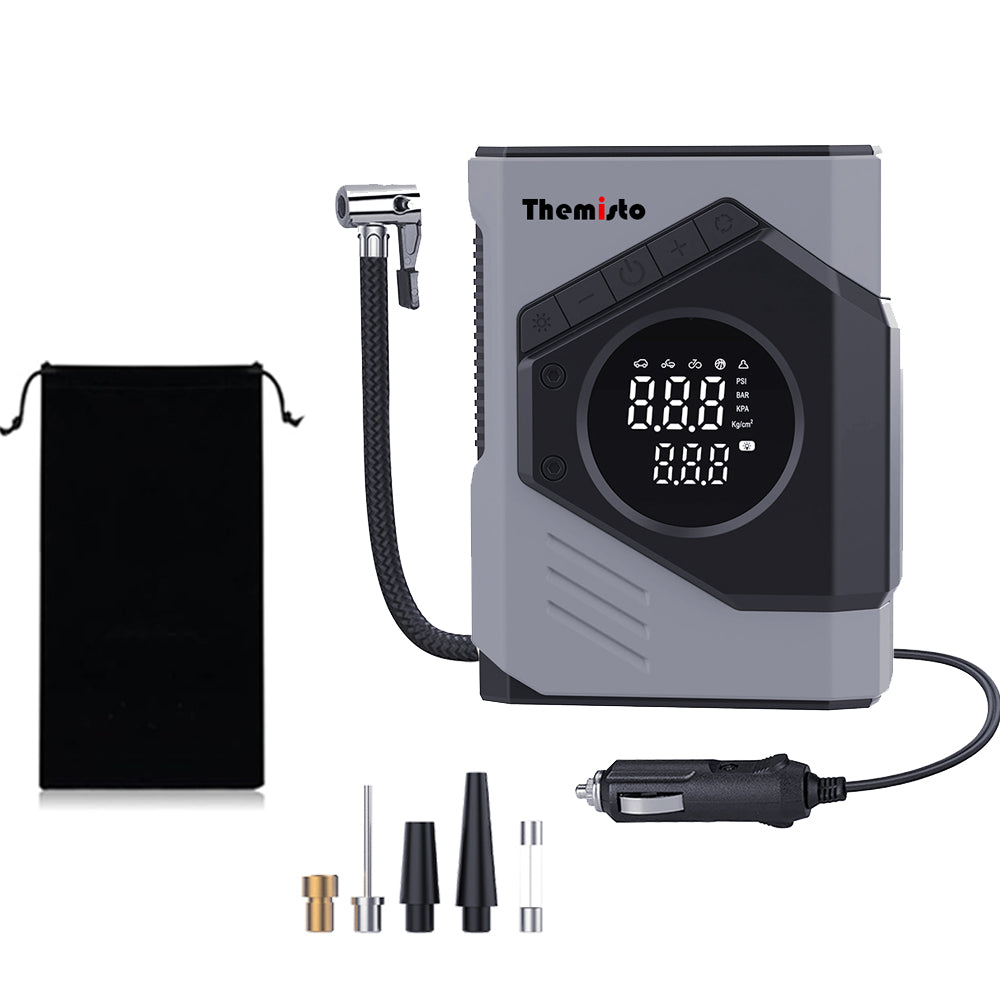 Themisto TH-TY03 Corded Tyre Inflator 12V DC - 150 PSI with Digital Tyre Pressure Gauge & LED Light I Portable Air Compressor I Car, Motorcycle, Bicycles & Other Inflatables
