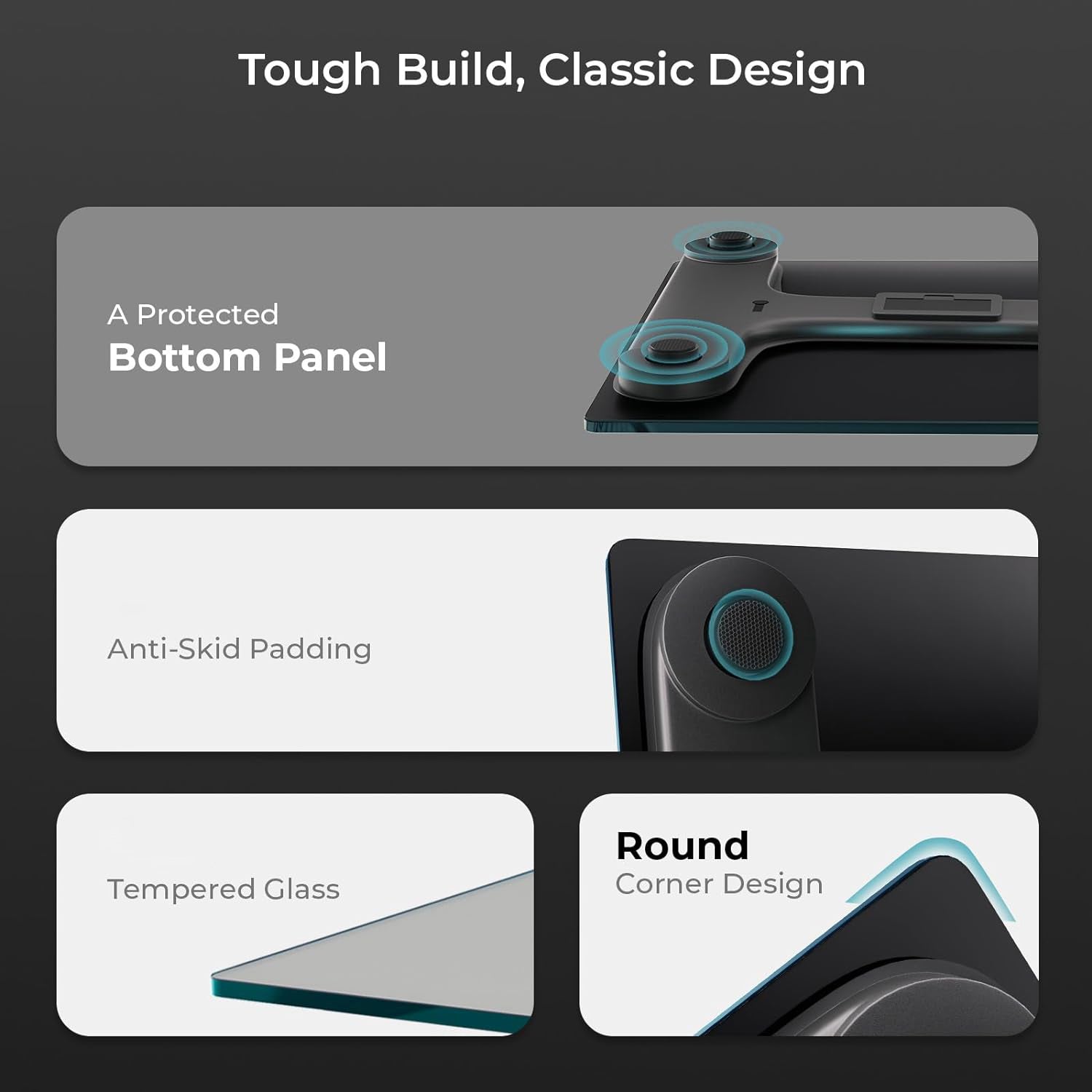 Tempered Glass Platform – Thick, durable tempered glass construction for superior strength and stability.